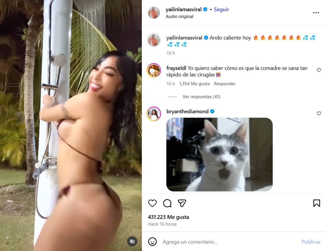 En las imágenes, Yailin presume de sus nuevas curvas, ya que hace apenas unos meses atrás se sometió a una nueva cirugía estética para redefinir su silueta pues declaró que quería reducir las medidas de sus pechos y su trasero para hacerlas más armoniosas con su diminuta cintura.
