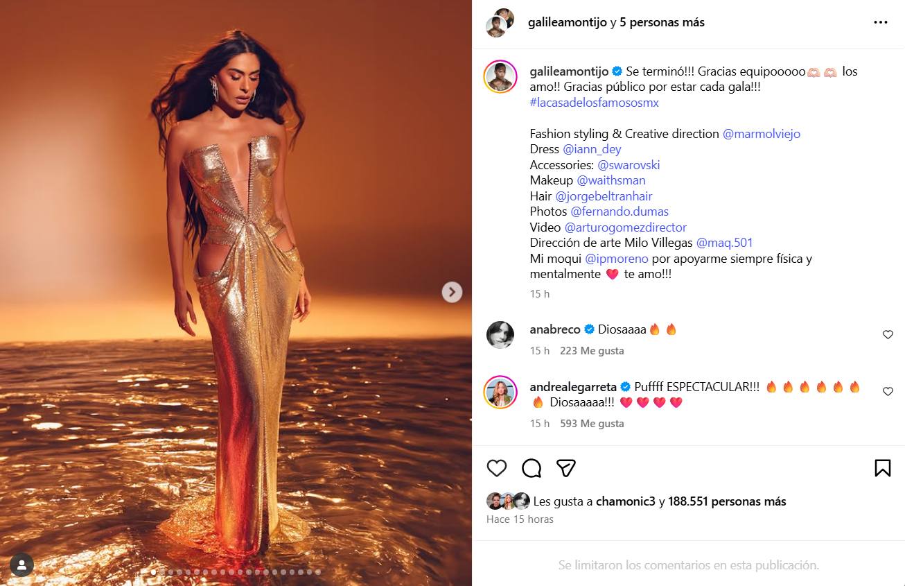 El vestido dorado que lució Galilea Montijo fue diseñado por Iann Dey, así lo confirmó la conductora en sus redes sociales.