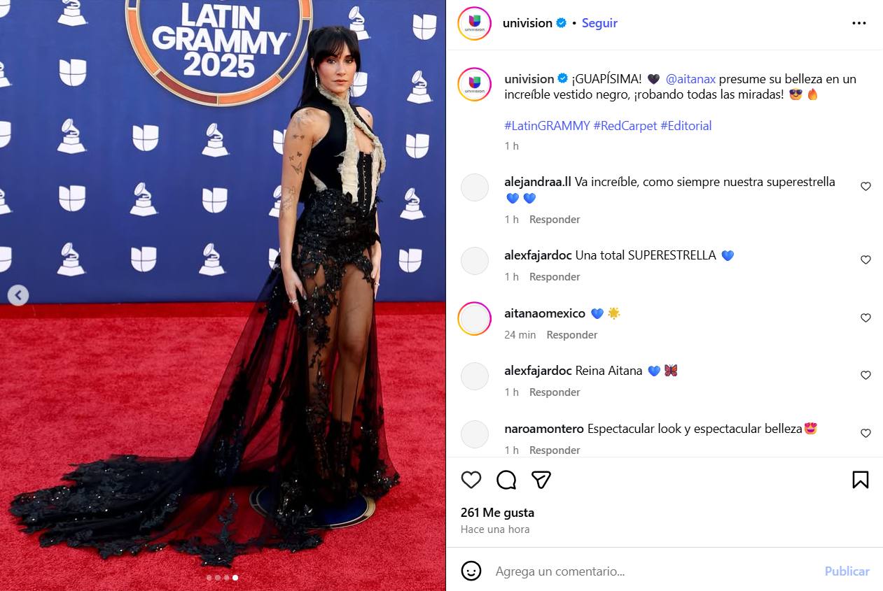 Aitana deslumbra con un diseño negro con transparencias en los Latin Grammy.