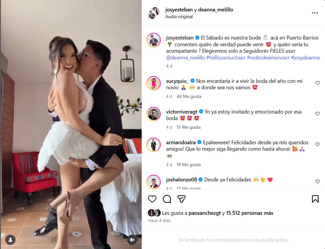 "Soy la más feliz contigo @josyesteban", publicó Deanna Melillo a través de sus redes sociales.