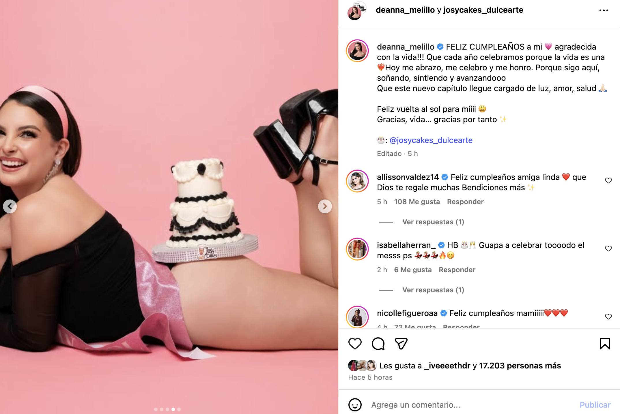 Deanna Melillo compartió fotografías cargadas de sensualidad, pero hubo una que se robó todas las miradas. Aparece posando con una diminuta tanga negra que deja al descubierto parte de sus atributos traseros, justo donde sostiene un llamativo pastel.