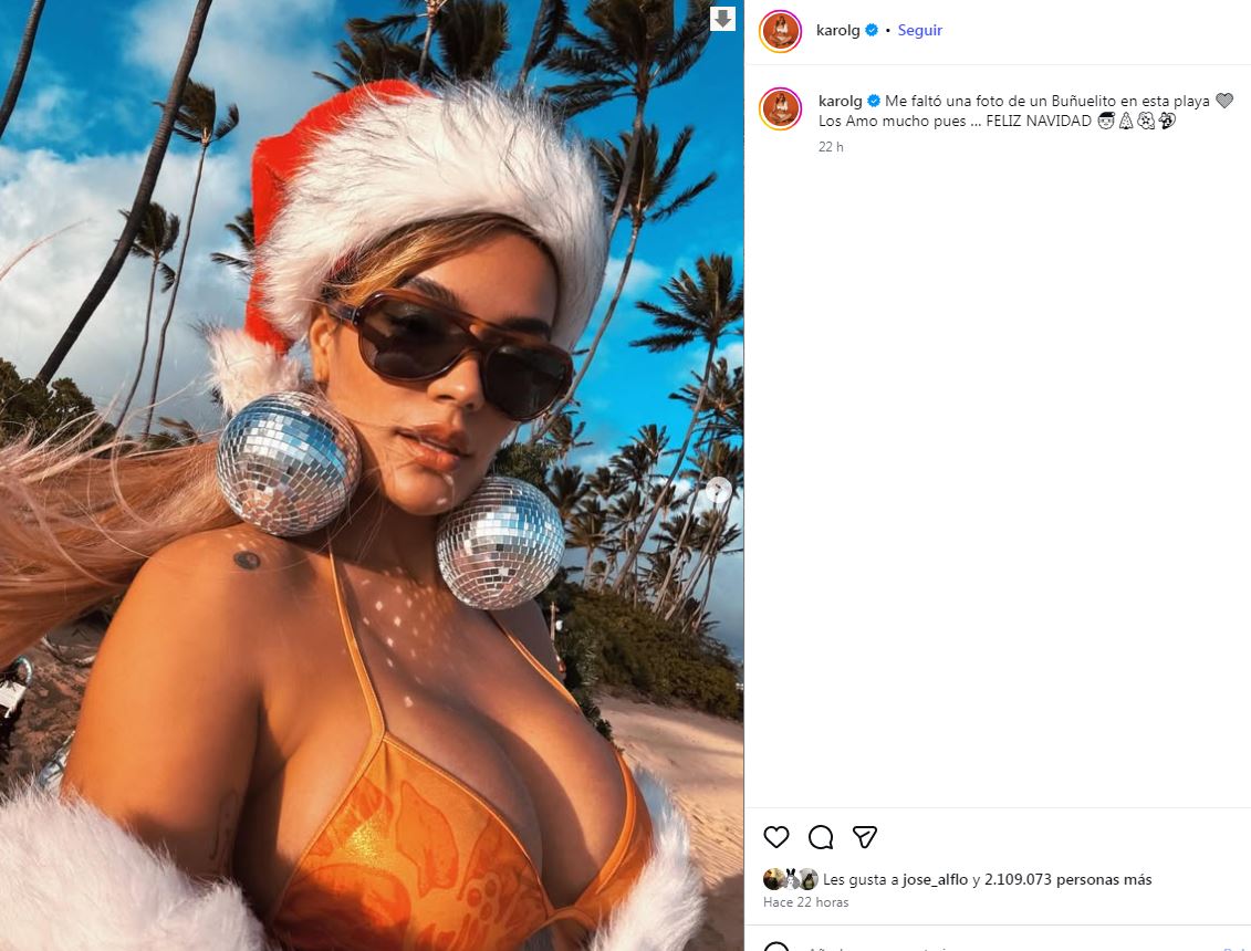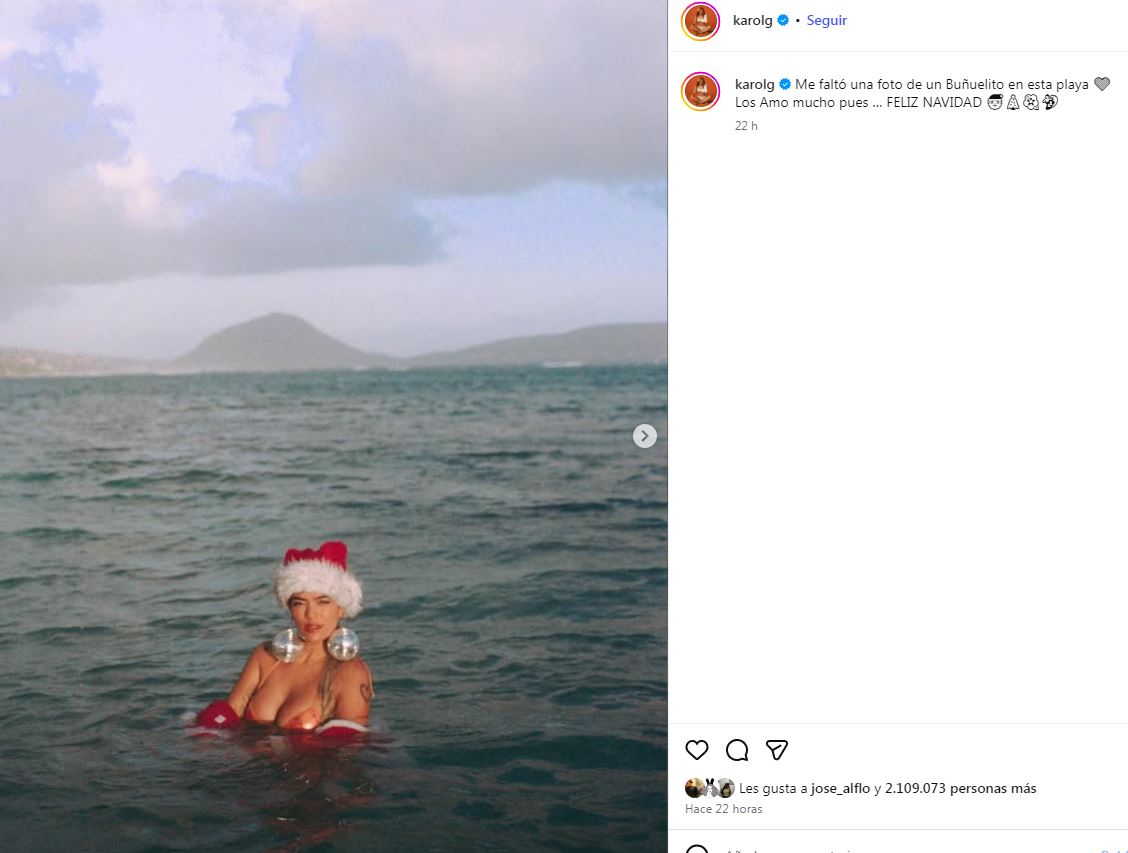 La cantante colombiana Karol G volvió a acaparar la atención de sus millones de seguidores al compartir una serie de imágenes con las que celebró la Navidad de una manera muy a su estilo: sensual, relajada y en conexión con el mar.
