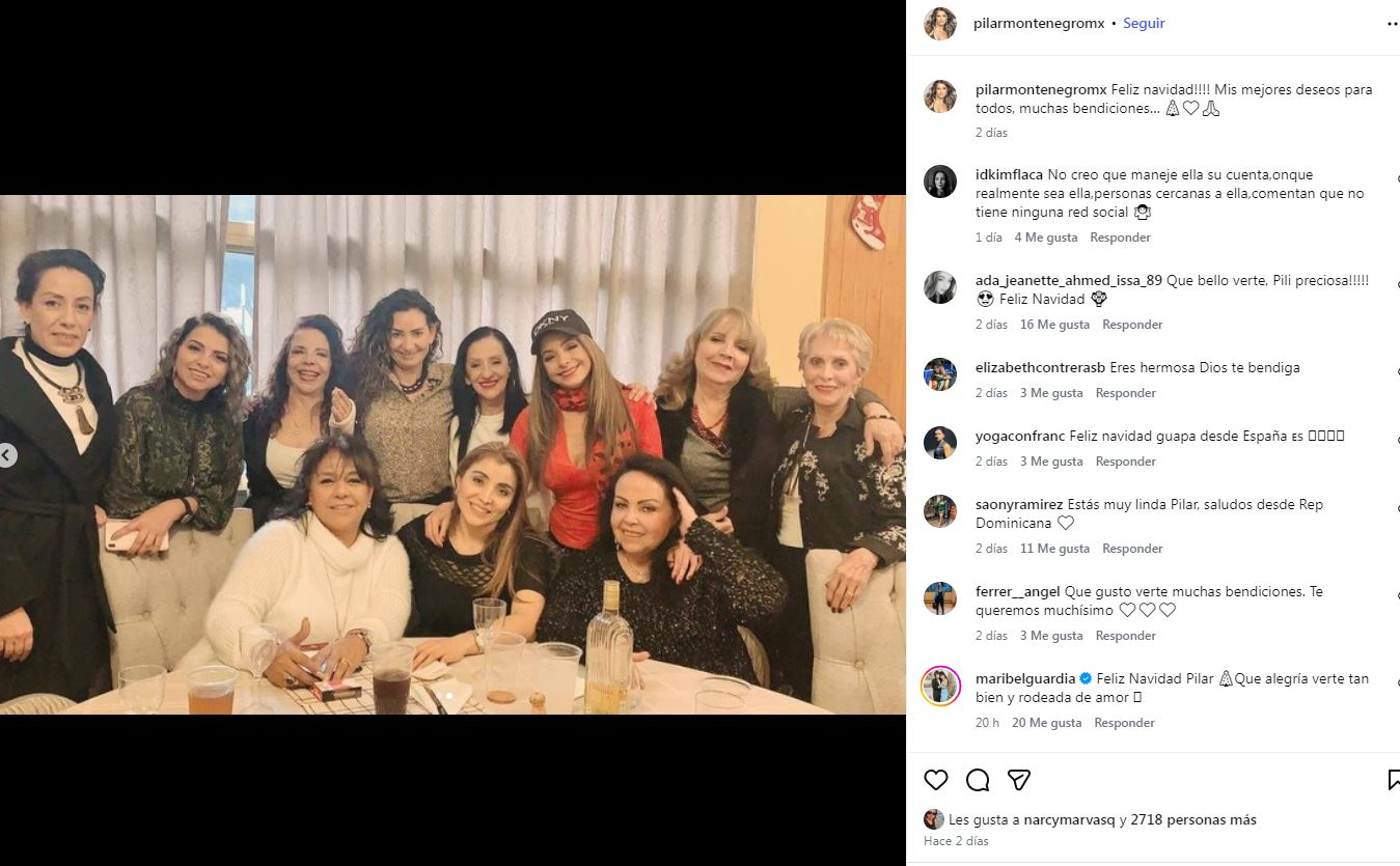 La fotografía, publicada durante las celebraciones navideñas, muestra a la artista rodeada de familiares y amigos en un ambiente íntimo y cálido. En la imagen, Pilar aparece sonriente y relajada, proyectando tranquilidad.