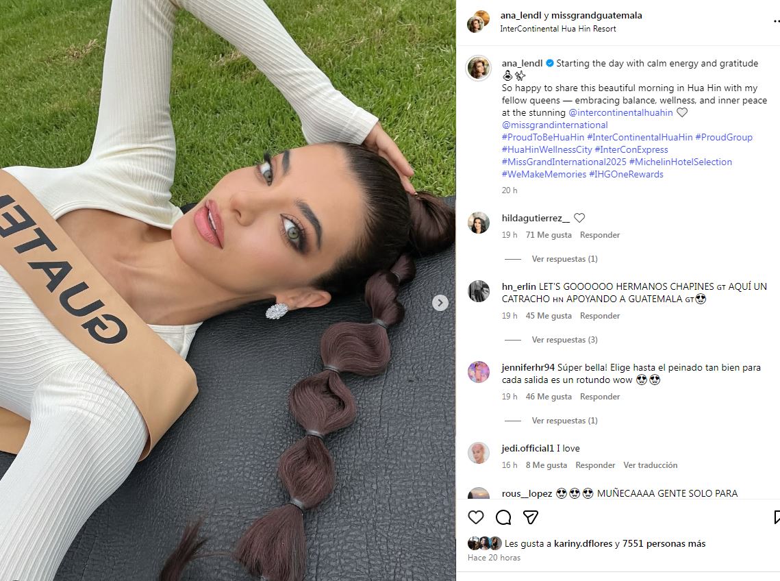 Ana Lendl fue coronada como Miss Grand Guatemala 2025 durante el Miss Guatemala Contest 2025, realizado en el Expocenter del Grand Tikal Futura Hotel en Ciudad de Guatemala.