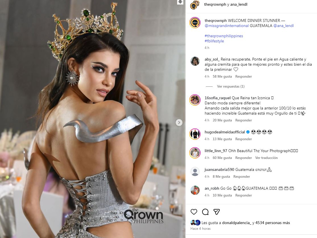 En la fotografía escribió: "Thank you @missgrandguatemala for instantly taking care of me and sending me meds after my incident. Feeling safe as your queen" ("Gracias @missgrandguatemala por cuidarme inmediatamente y enviarme medicinas después de mi incidente. Me siento segura como su reina").