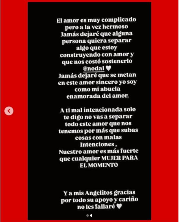 "El amor es muy complicado pero a la vez hermoso. Jamás dejaré que alguna persona quiera separar algo que estoy construyendo con amor y que nos costó sostenerlo. Jamás dejaré que se metan en este amor sincero", se lee en una parte del mensaje.