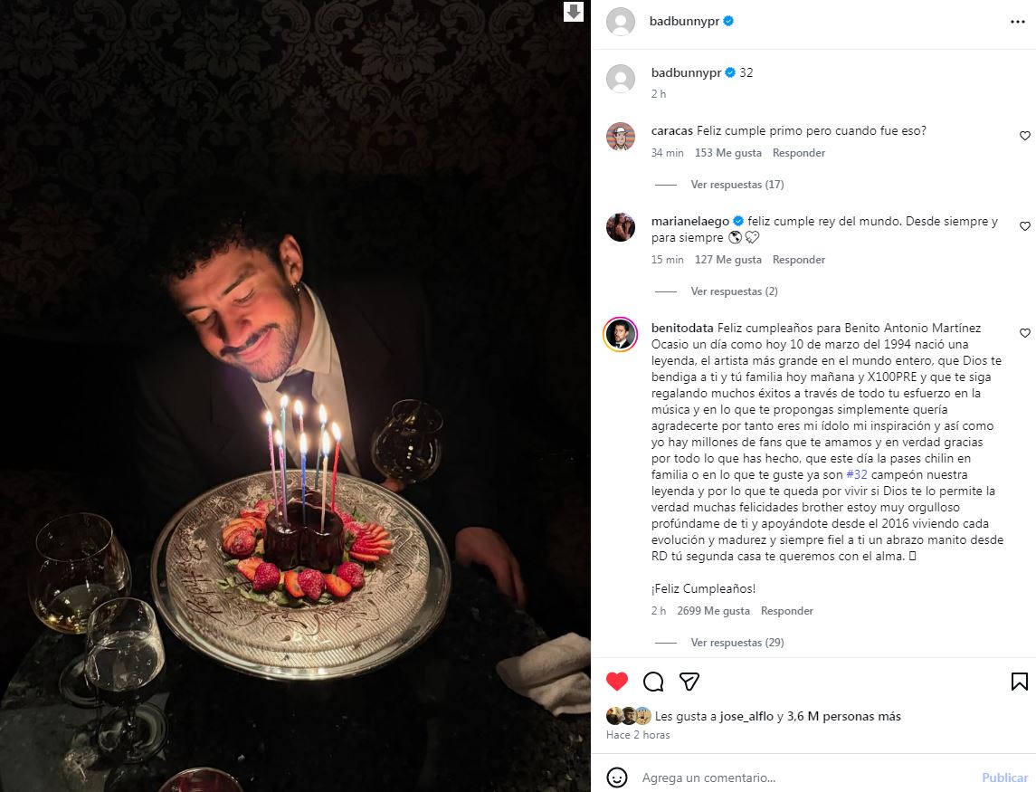 Entre los comentarios destacados aparece el de la modelo venezolana Marianela González, quien escribió: "Feliz cumple rey del mundo. Desde siempre y para siempre".