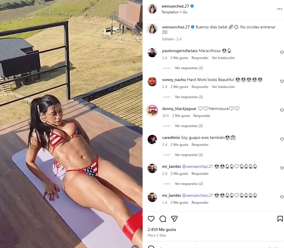 En los últimos días, la joven ha generado gran repercusión en redes sociales al publicar nuevas imágenes y videos donde aparece realizando ejercicios al aire libre mientras luce bikinis inspirados en diferentes banderas, combinando así su estilo fitness con su identidad como aficionada al deporte.