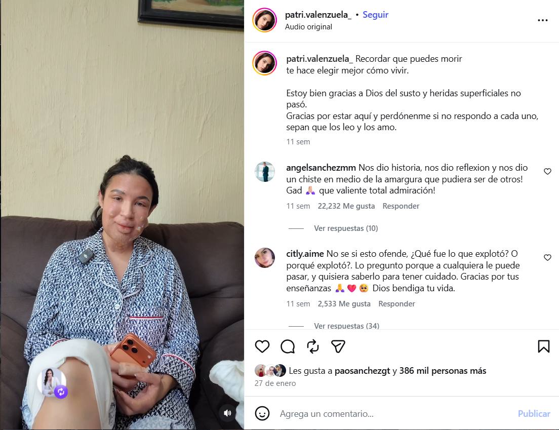 La actriz y creadora de contenido Patricia Valenzuela enfrentó recientemente una situación de alto riesgo tras una explosión de gas en su departamento, hecho que le causó graves quemaduras en distintas partes de su cuerpo.
