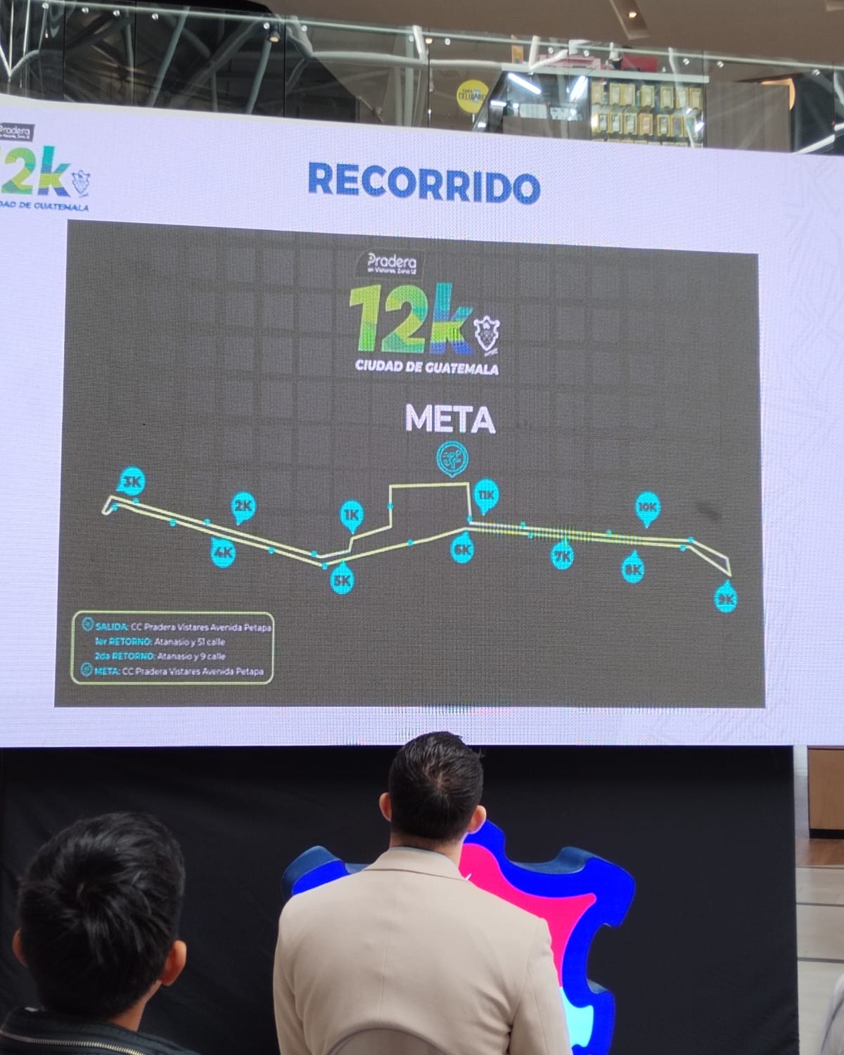 De acuerdo a la presentación que hizo Luis Pineda y los organizadores de este evento pedestre, la carrera tendrá dos retornos: El primero estará ubicado en la calzada Atanasio Tzul y 51 calle, y el segundo es el ubicado en la 9na. Calle, y de esta forma, los competidores podrán hacer sin contratiempos su recorrido de los12 kilómetros.