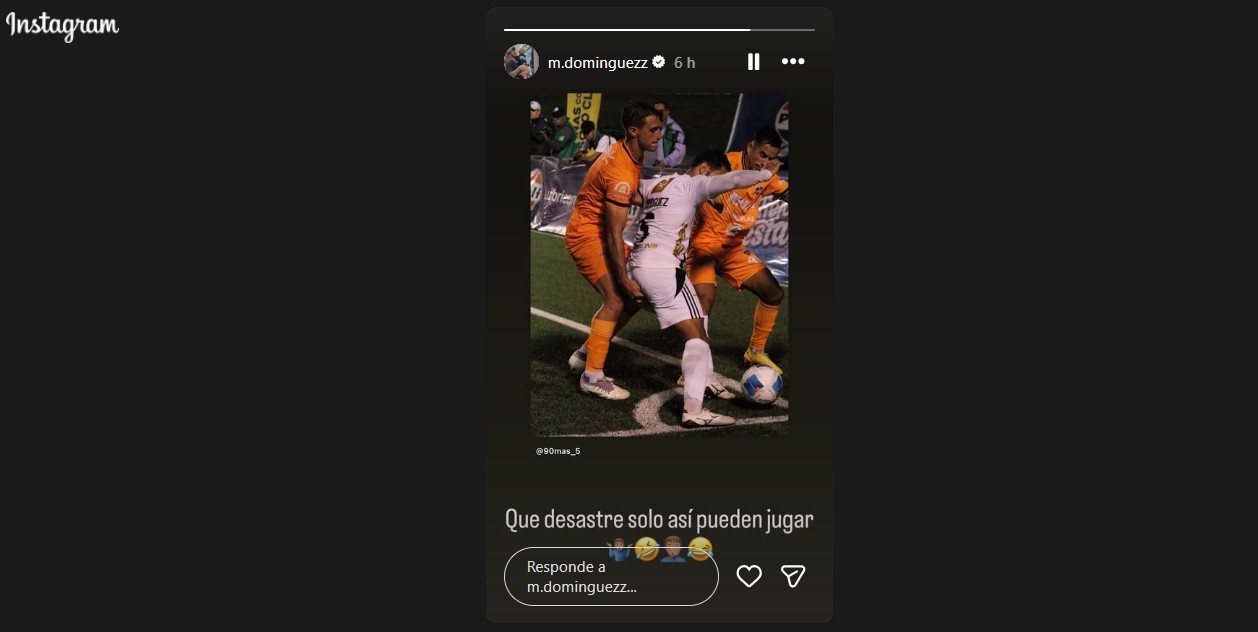 "Qué desastre, solo así pueden jugar", escribió el jugador Marco Domínguez en una historia de Instagram donde reposteó la fotografía del incómodo momento.