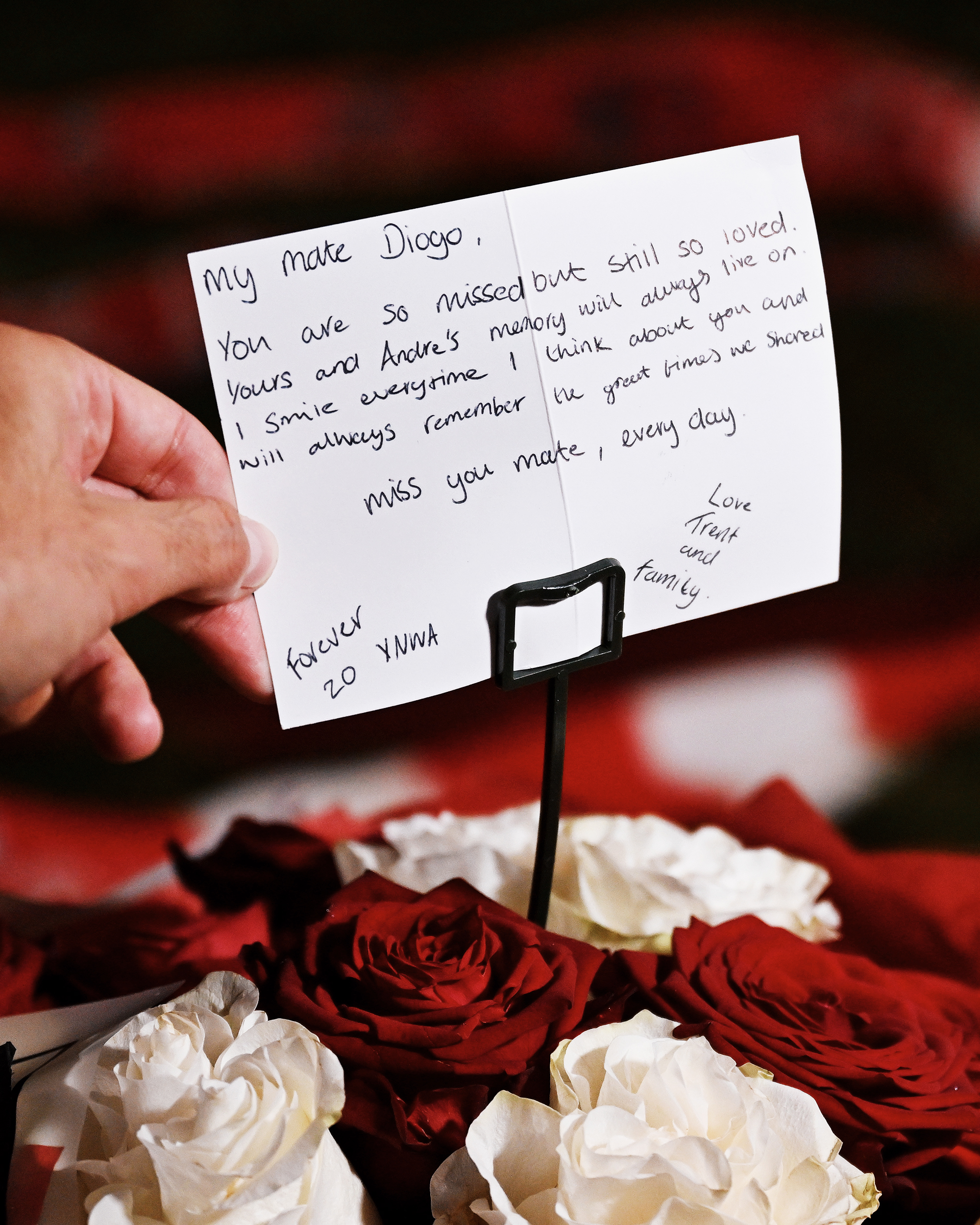 "Mi amigo Diogo. Te echamos mucho de menos, pero seguimos queriéndote mucho. Tu recuerdo y el de André siempre permanecerán vivos. Sonrío cada vez que pienso en ti y siempre recordaré los buenos momentos que compartimos. Te echo de menos, amigo, cada día", escribió.