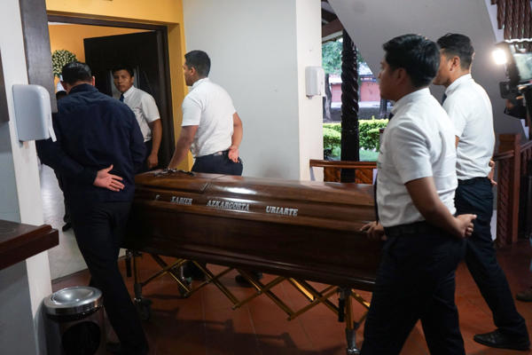 Después los exfutbolistas de la Selección mundialista de 1994 Marco Antonio Etcheverry, Milton Melgar, Marco Sandy, Juan Manuel Peña y William Ramallo llevaron el féretro hasta la calle.