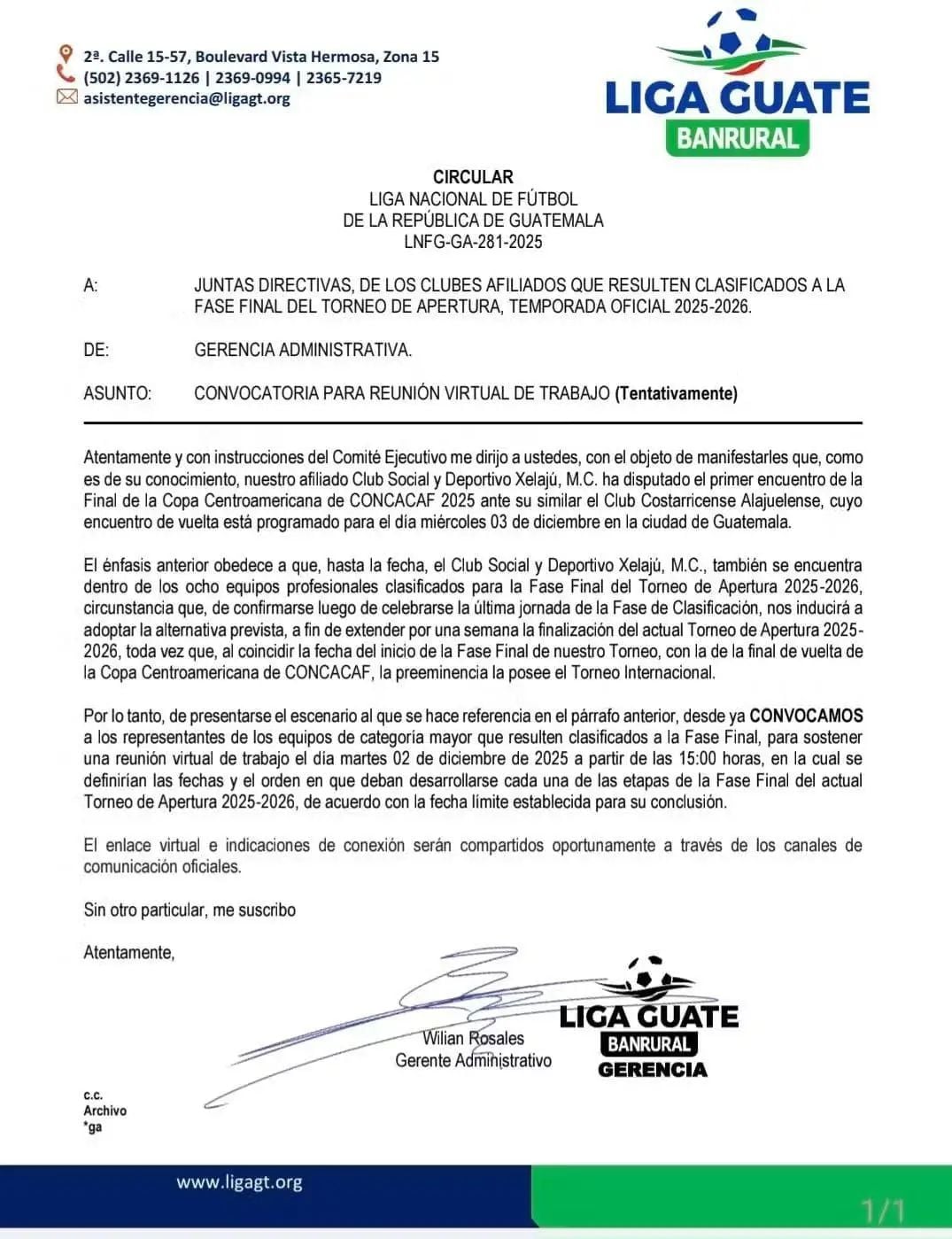 La Liga Nacional reiteró que anunciará los enlaces de conexión y cualquier instrucción adicional a través de los canales oficiales, manteniendo el objetivo de garantizar una organización adecuada ante la posibilidad de este ajuste extraordinario en el calendario competitivo.