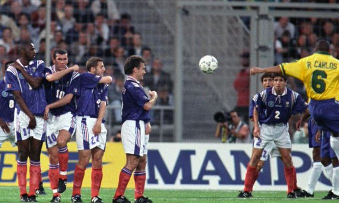 Gol de Roberto Carlos ante la selección de Francia en 1997. -