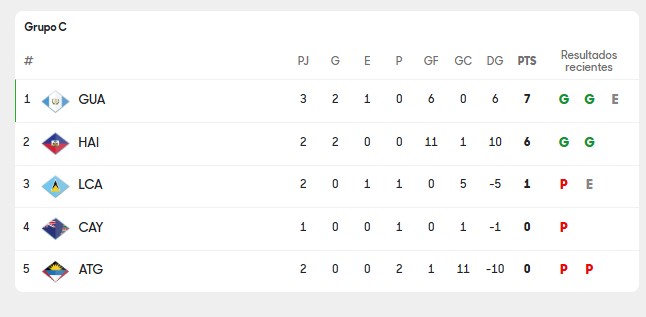 Las haitianas llevan dos juegos para sumar 6 puntos y estar por detrás de Guatemala a una unidad, por lo que el duelo entre ambas selecciones decidirá el futuro de este grupo.