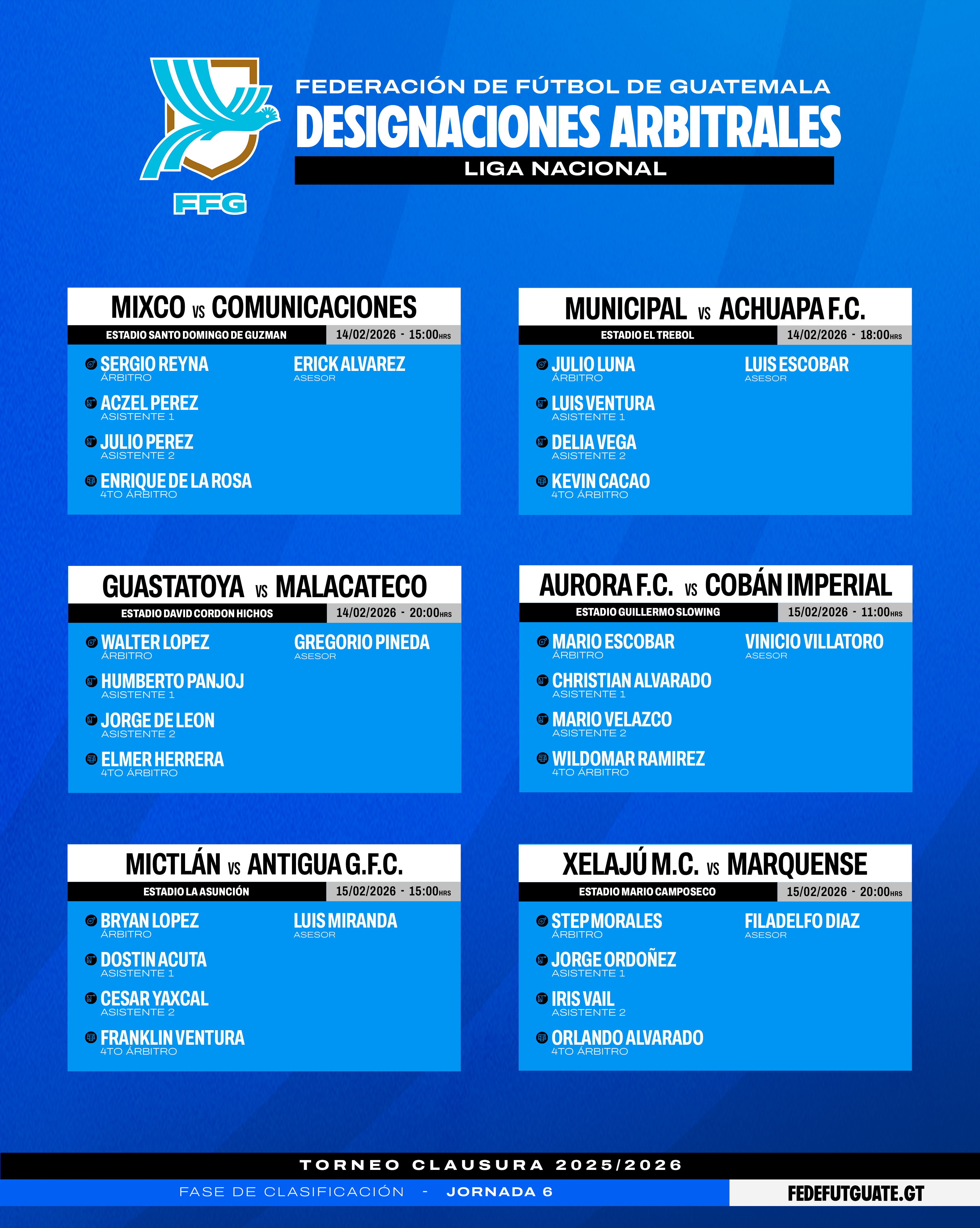 Este fin de semana se realizará la sexta fecha del Torneo Clausura 2026 de la Liga Nacional, donde el cuadro de Cobán Imperial, que dirige el técnico uruguayo Martín García buscará mantener el liderato, el cual, ha tenido en su poder desde la fecha uno de la competencia.