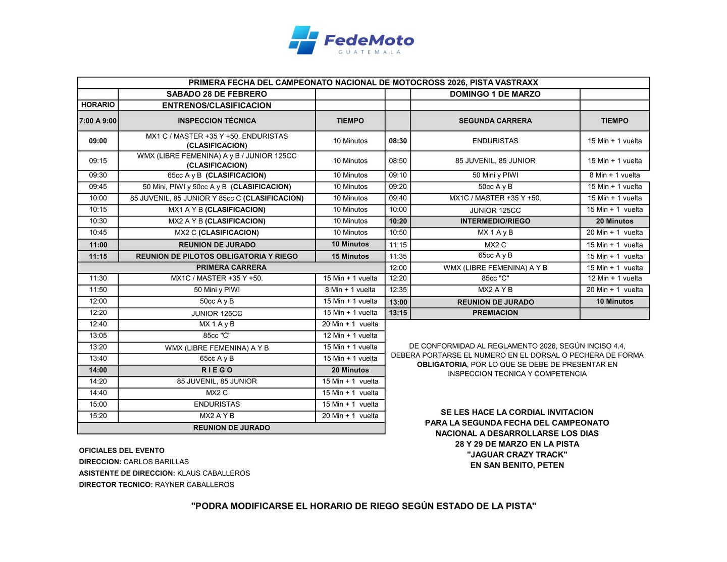 Los aficionados quedaron totalmente invitados para este fin de semana y siguientes eventos a cargo de la Federación Nacional de Motociclismo de Guatemala. "Invitamos a todos los pilotos, equipos y aficionados a ser parte de esta gran fiesta del motociclismo nacional. Nos vemos en la pista", dice la Federación.