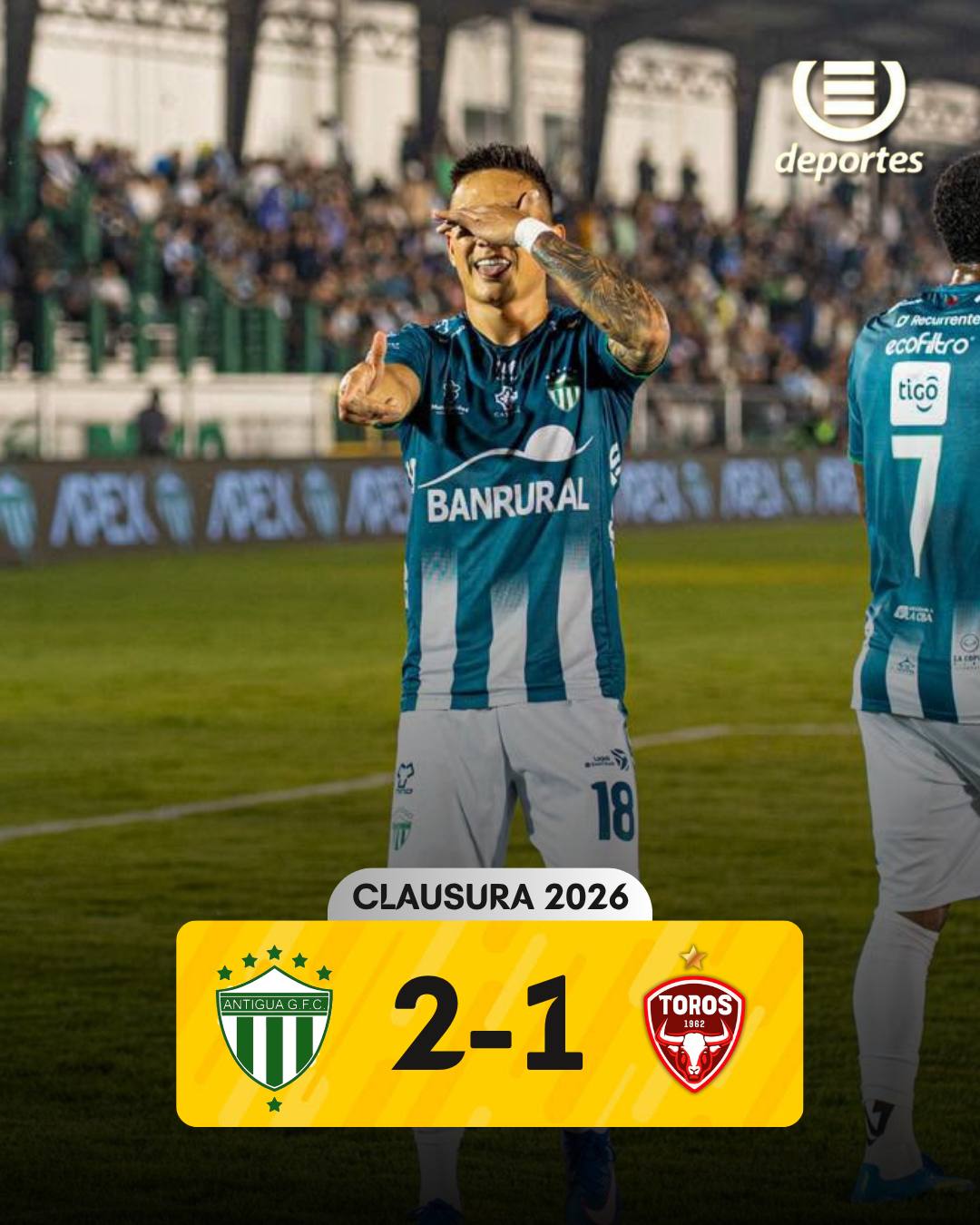- Antigua 2-1 Malacateco: Agustín Maziero y Óscar Santis / Kevin Ramírez