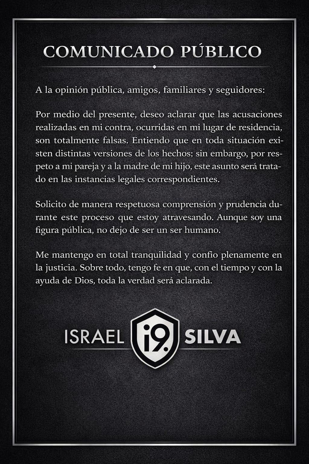 Ante la creciente controversia, el exfutbolista decidió emitir un comunicado público a través de sus redes sociales. En el mensaje, dirigido a la opinión pública, amigos, familiares y seguidores, Silva negó categóricamente las acusaciones en su contra. Aseguró que los señalamientos surgidos en su lugar de residencia son "totalmente falsos" y subrayó que, aunque pueden existir distintas versiones de los hechos, el caso será tratado en las instancias legales correspondientes, en respeto a su pareja y a la madre de su hijo.