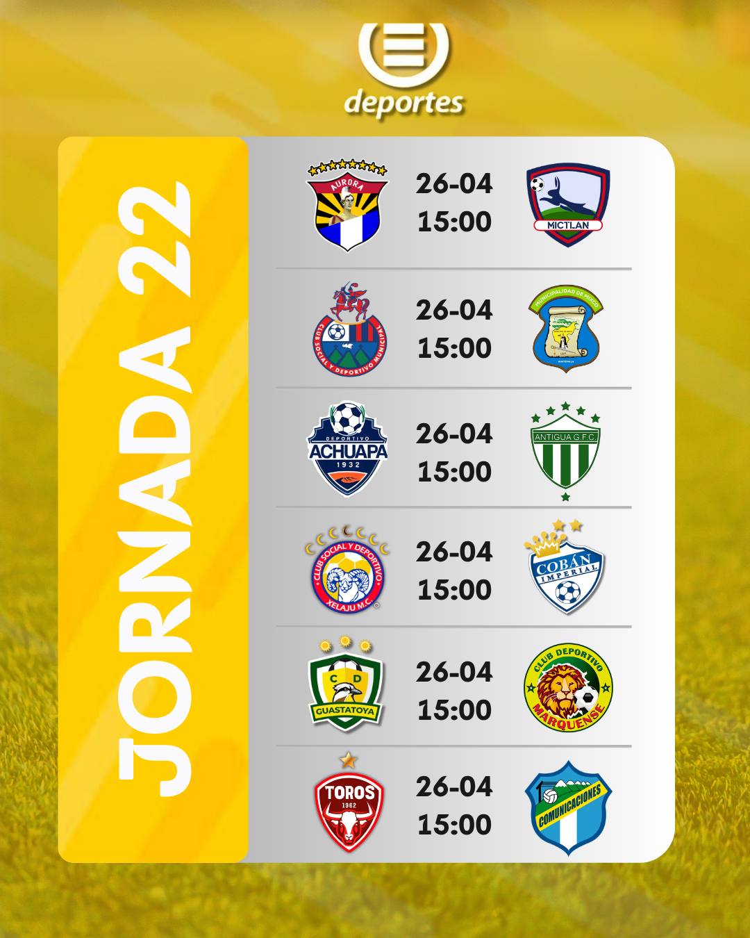 Un total de seis partidos simultáneos serán parte del gran escenario este domingo 26 de abril cuando en la Liga Nacional se desarrolle la última fecha de la fase de clasificación del Torneo Clausura 2026, donde estarán en juegos varias cosas, entre ellas, el último boleto a los cuartos de final, el cual podría ser entre Guastatoya y Mictlán; además, el último descenso donde cuatro equipos tratarán de no ser los que pierdan la categoría: Marquense, Guastatoya, Malacateco y Mictlán. También está en juego el liderato de goleo, donde todo apunta a Nicolás Martínez y la definición del portero menos vencido.