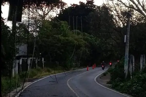 Al momento de desplomarse, el árbol desprendió cables del tendido eléctrico que permanecen sobre la cinta asfáltica, por lo que el carril de ingreso a la mencionada localidad permanece bloqueado, situación que ha generado implicaciones en la movilidad vehicular en el sector.
