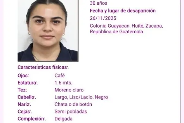 En el aviso difundido para intentar localizar a la funcionaria municipal se detalla que fue vista por última vez en la colonia Guayacán, Huité, Zacapa.