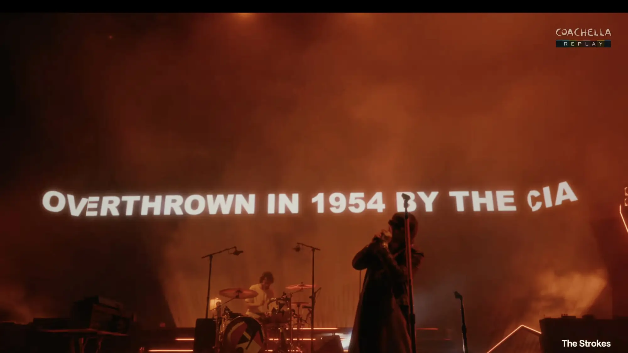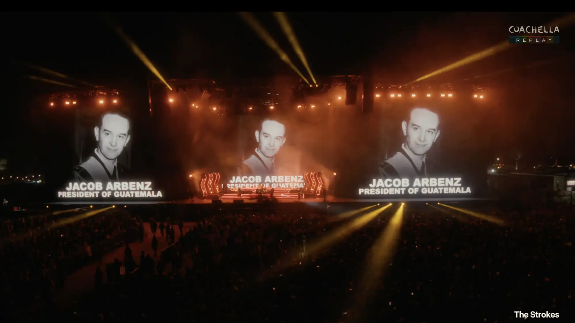 El escenario del Festival Coachella 2026 tuvo un momento inusual que se hizo tendencia durante este domingo, 19 de abril de 2026, porque la banda "The Strokes" proyectó la fotografía del expresidente Jacobo Arbenz Guzmán, cuando interpretaba su canción "Oblivius". Además, la banda liderada por cantante, compositor y productor Julián Casablanca, proyectó la imagen de otros exmandatarios de Latinoamérica y del mundo, como una señal de protesta.